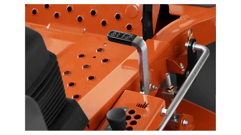 - 13 position deck height adjustment: Precision adjustment of the cutting deck’s height is made simple by foot-activated controls.
