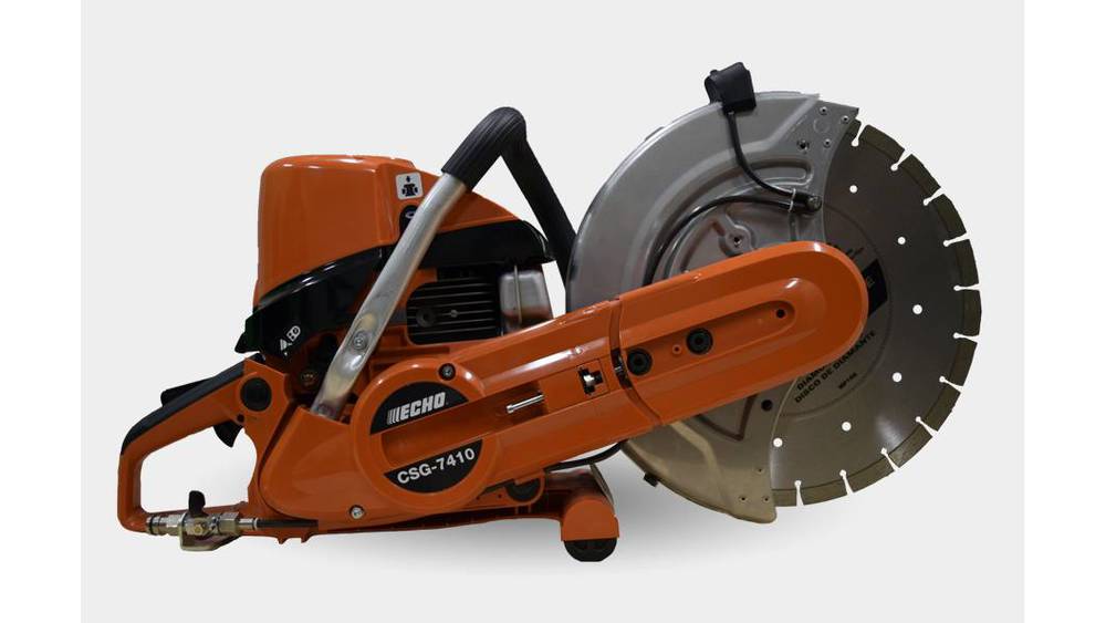 Easy cuts for hardscape pros. The best-in-class CSG-7410 concrete saw features a high drive ratio for improved cutting through thick masonry blocks and dense concrete. Its durable, user-friendly design includes a four-stage air filtration system and a quick-release hose adapter.