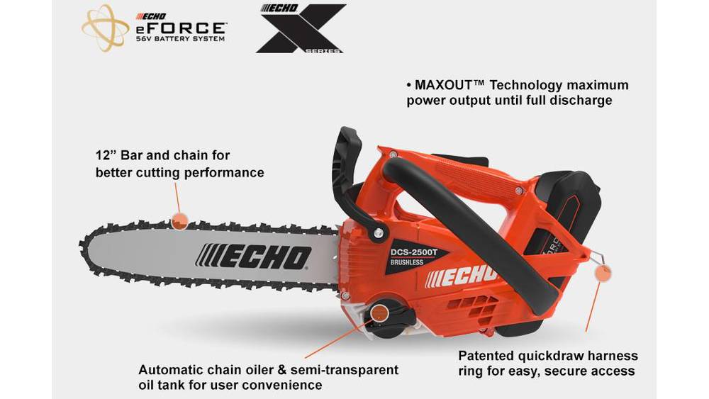 What do the pros need from a battery-powered chainsaw? ECHO asked, then designed the DCS-2500T to meet their demanding standards. On the strength of the ECHO eFORCE® 56V battery system, this lightweight beast is perfect for high-climbing professional arborists.