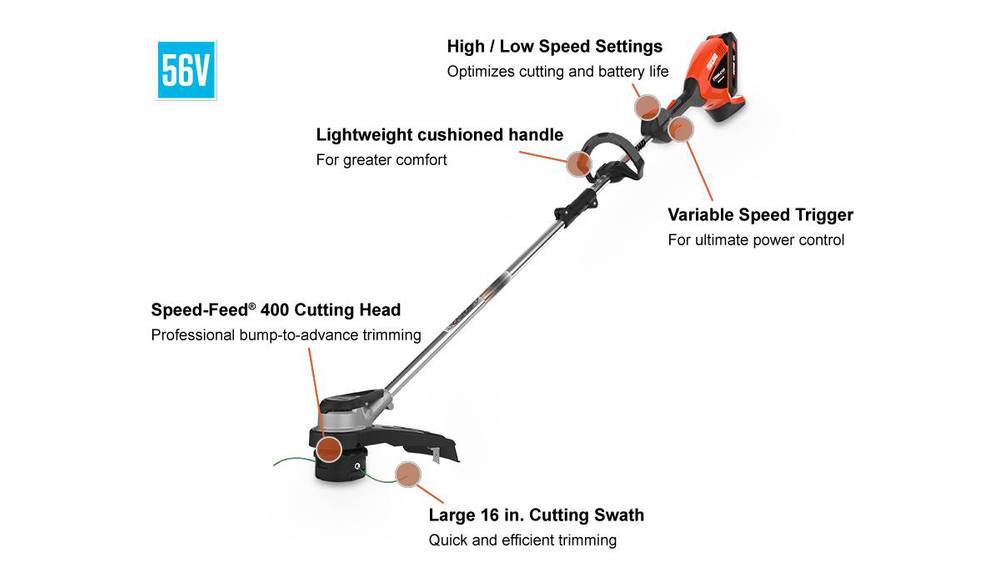 - 14 in. or 16 in. cutting swath: Adjustable for either efficient or aggressive cutting