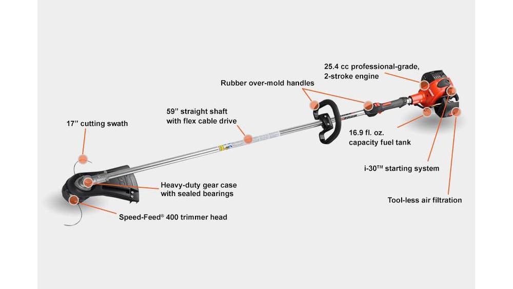 - 21.2 cc professional-grade, 2-stroke engine
